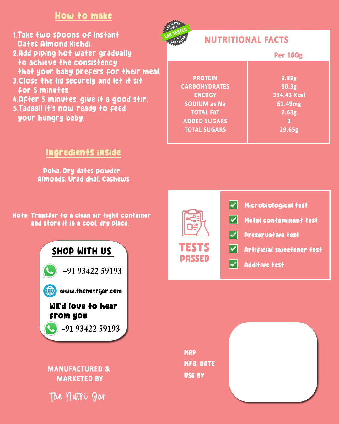 Introducing our wholesome and nutritious Dates Almond Kichdi, specially crafted with love for your little ones! Bursting with essential nutrients and natural goodness, this delicacy is designed to tantalize tiny taste buds while nourishing growing bodies.